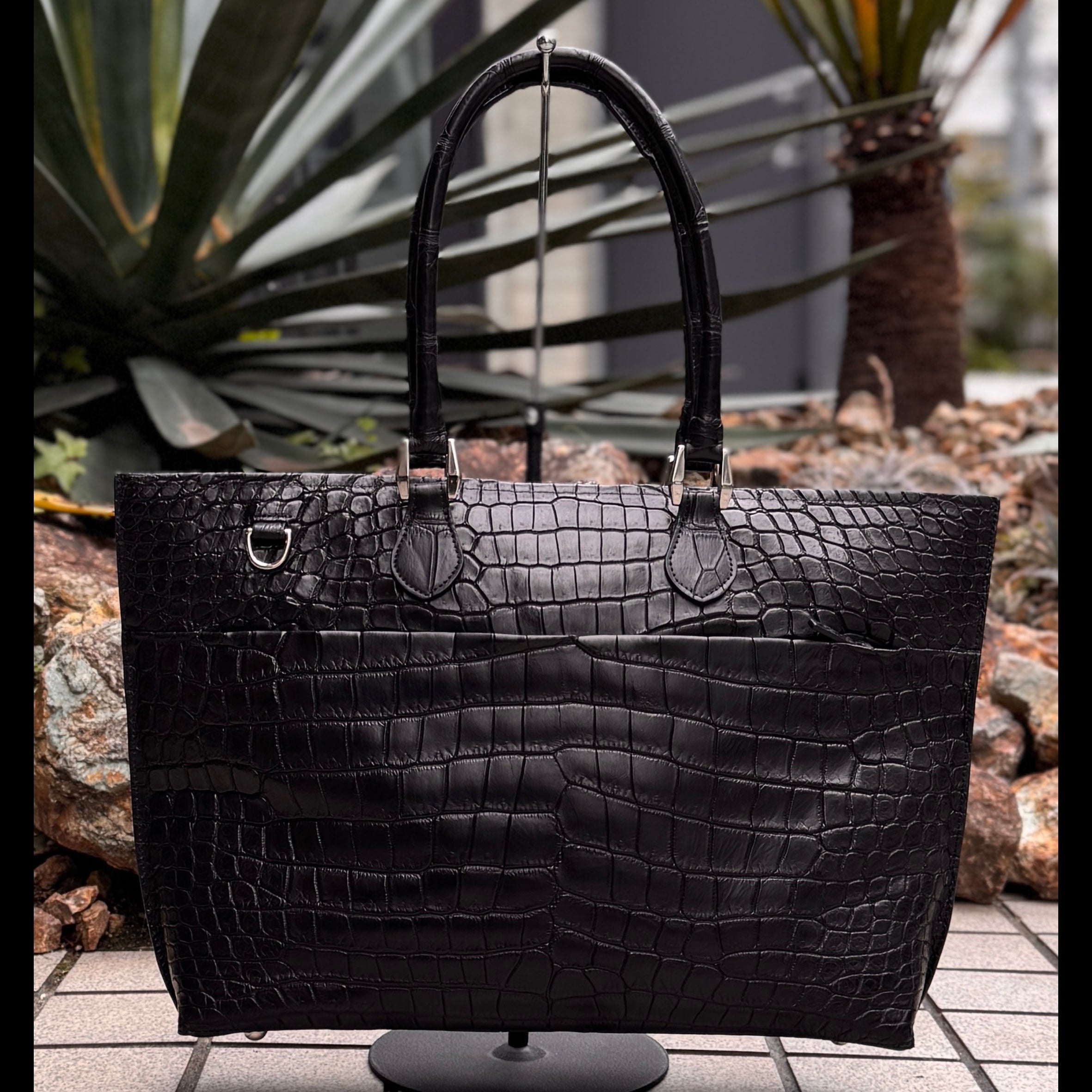 クロコダイルポロサス黒染 ビッグトートバッグ