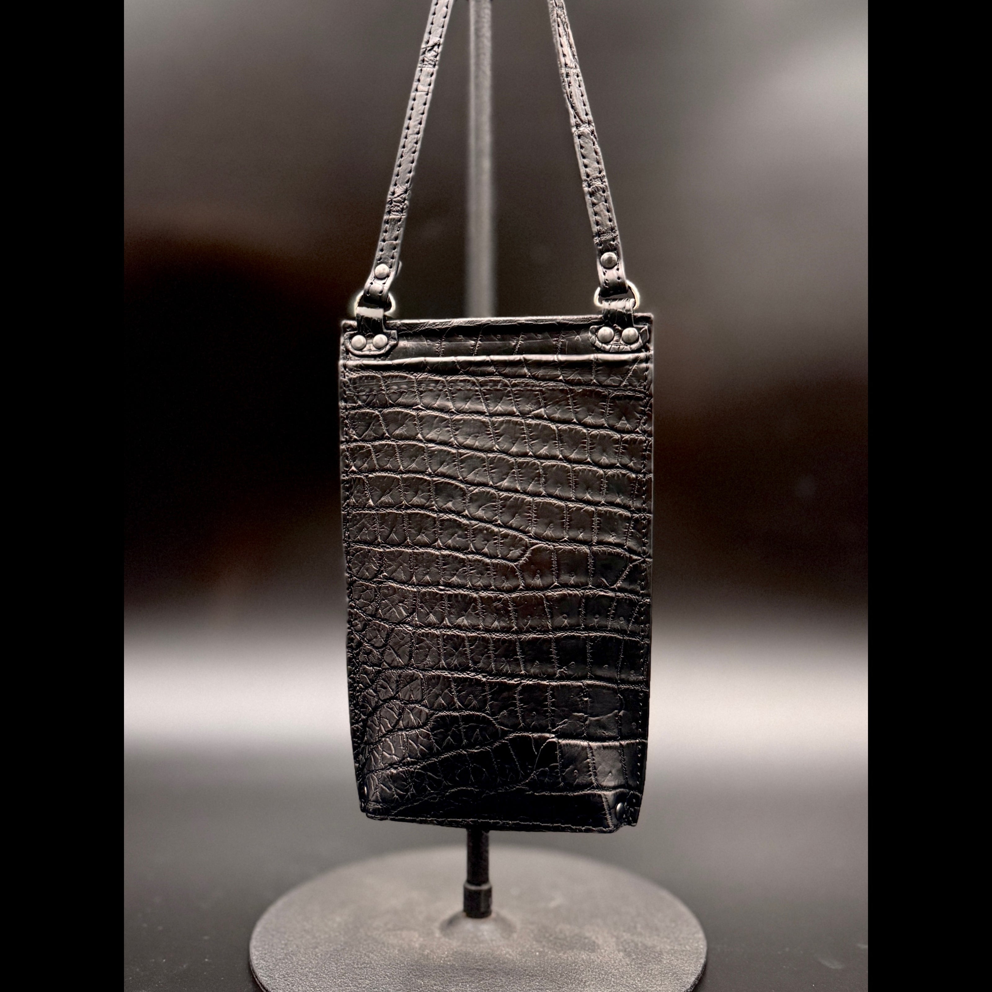 クロコダイルポロサス黒染 スマホショルダーケース