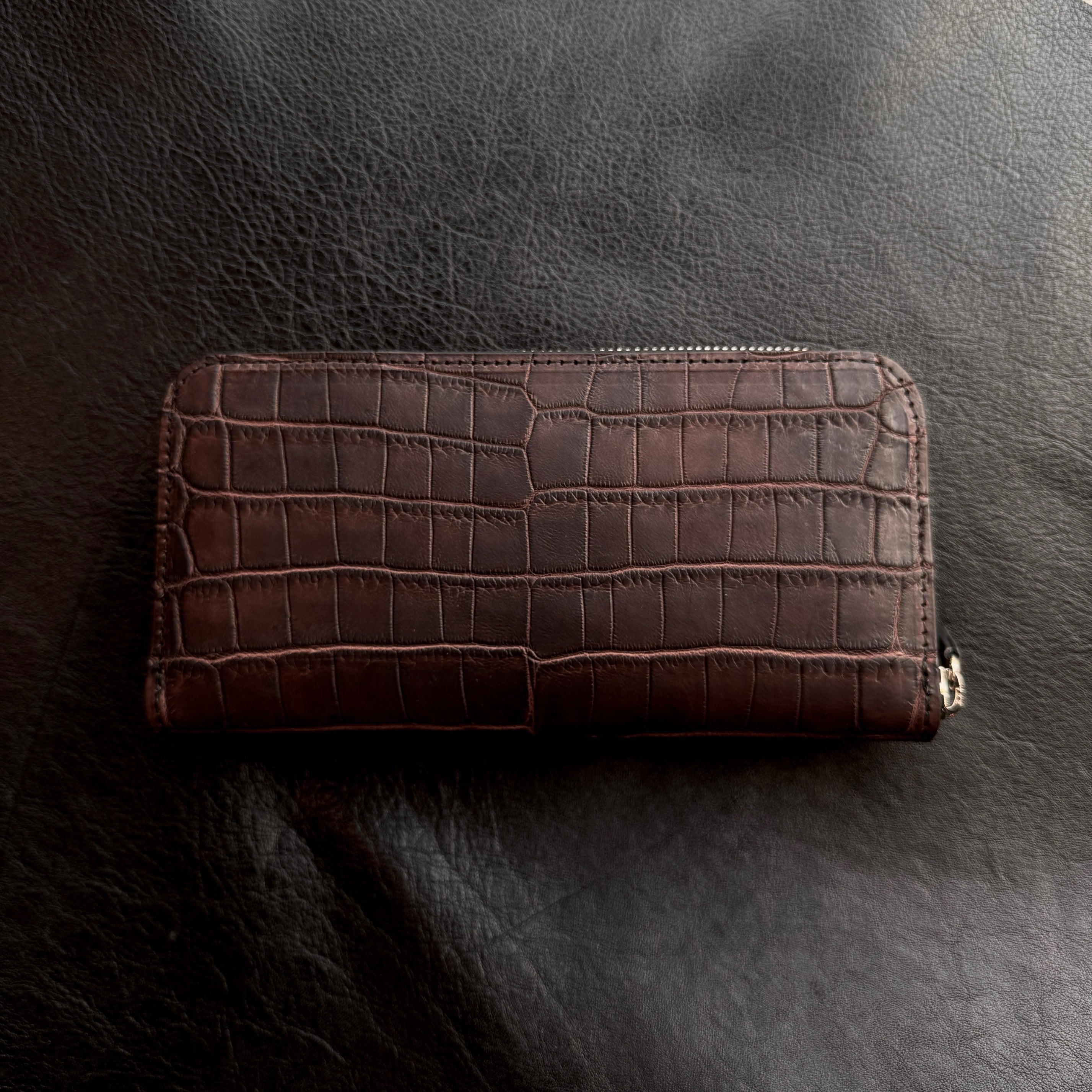 ワニ革特有の「斑」の美しさを最大限活かしたデザイン。
