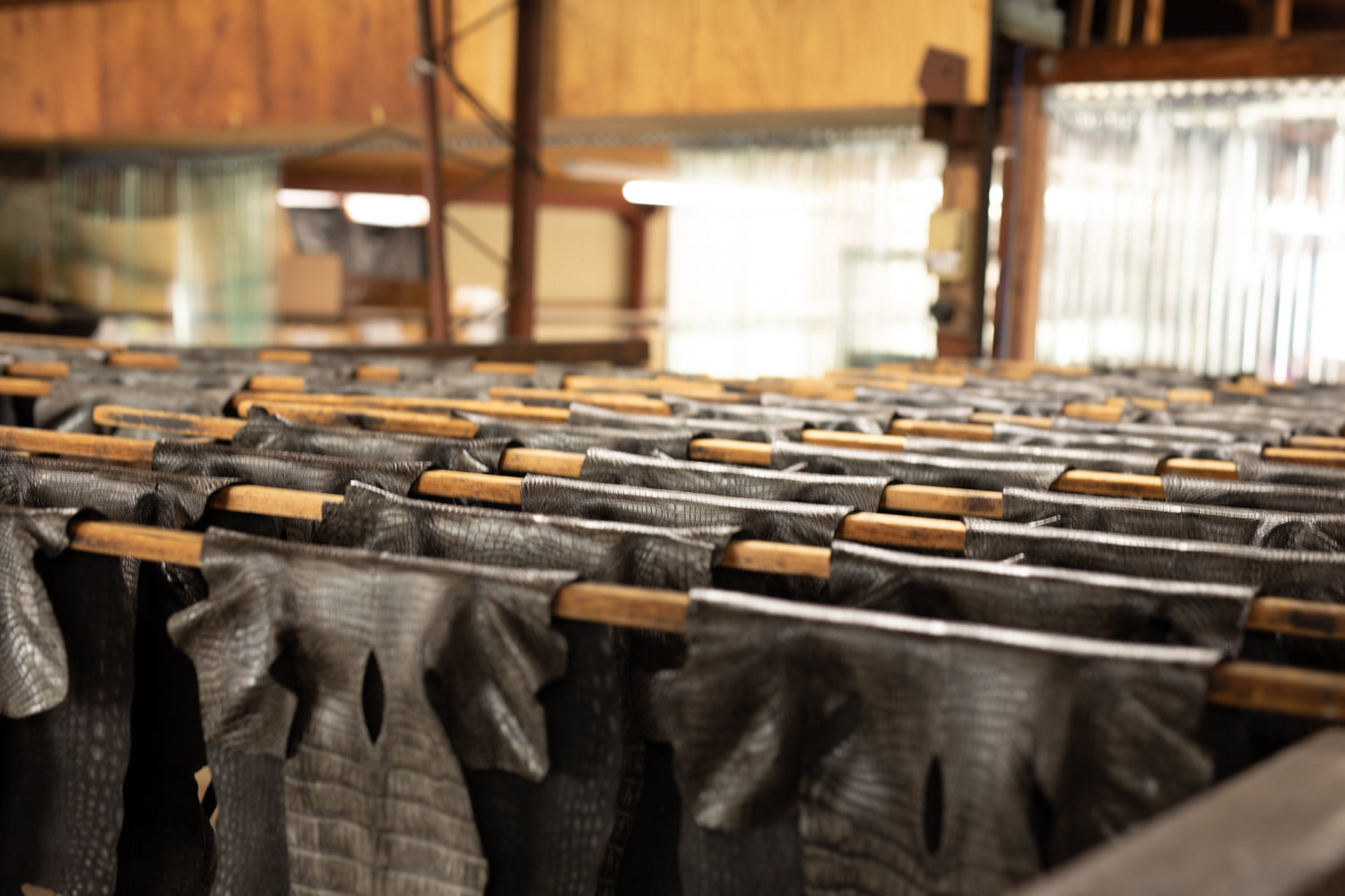 最高品質のワニ革「クロコダイルポロサス」を更に職人の目で見て、手で触り、数あるレザーの中から厳選して仕入れを行います。