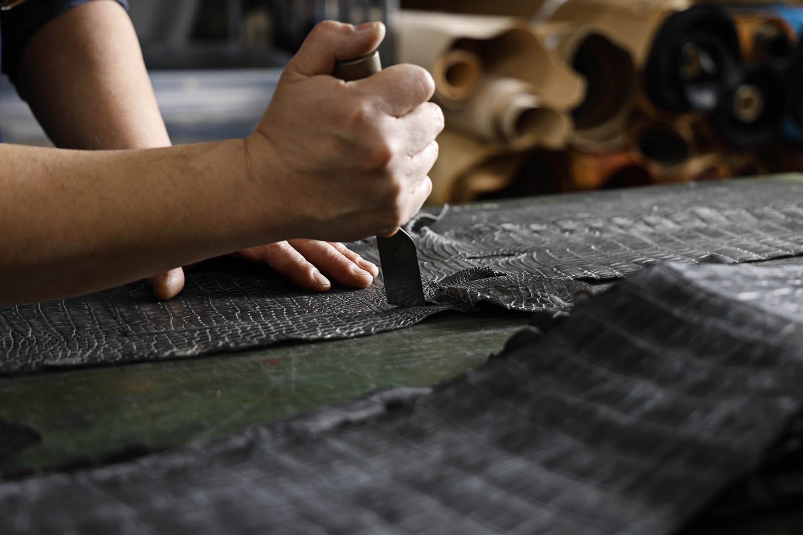 クロコダイルの中でも最高級といわれる「ポロサス」や、世界的有名ブランドも使用するカーフレザーを使い、独自の感性と加工で生み出されるプロダクツ。