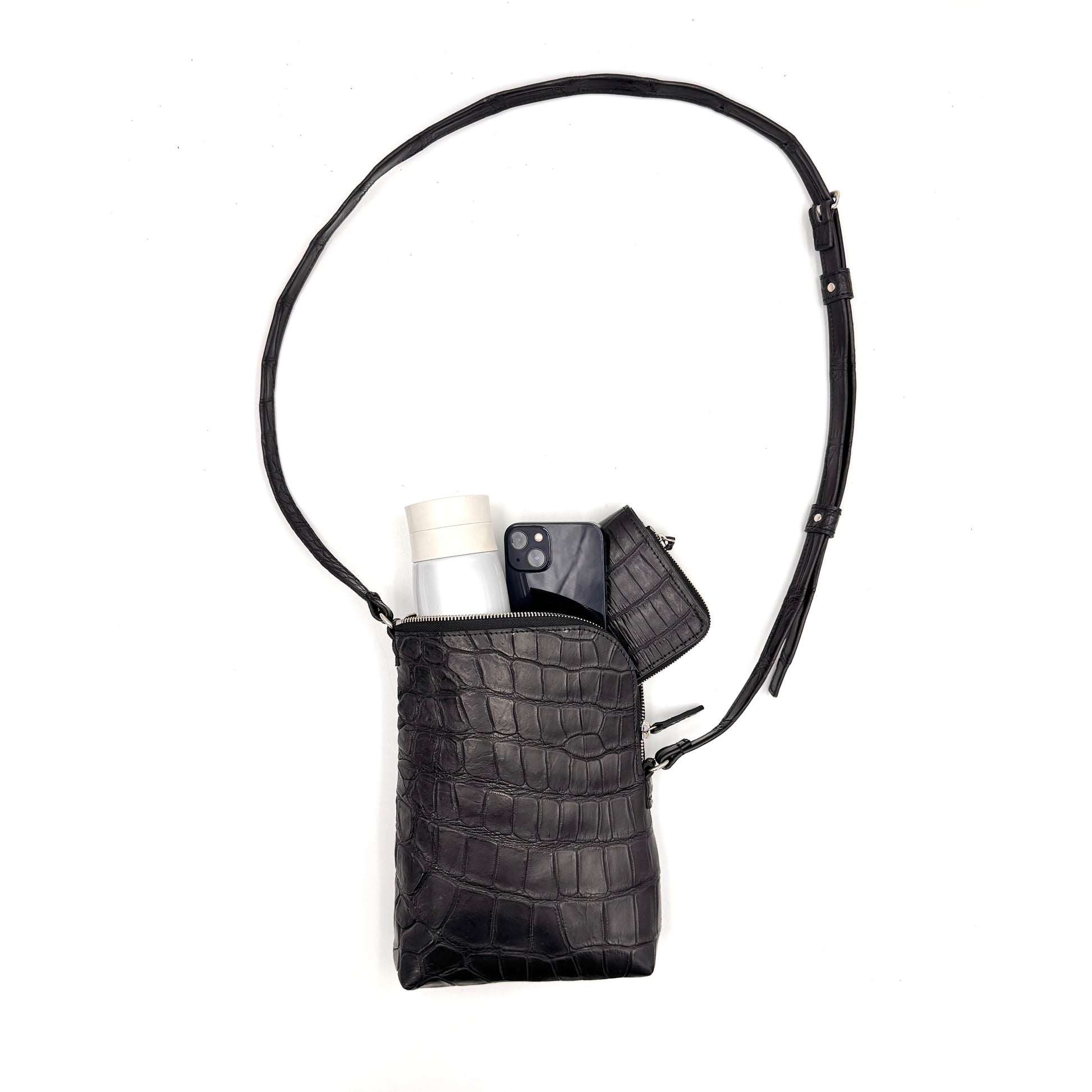 クロコダイルレザーの中でも最高品質のポロサスを使用した、定番デザインのショルダーバッグ。簡単な荷物を邪魔せず収納できる上品な仕上がり。割りを入れずに1枚革で贅沢に作られたバッグは、コーディネートのポイントとして存在感を示します。