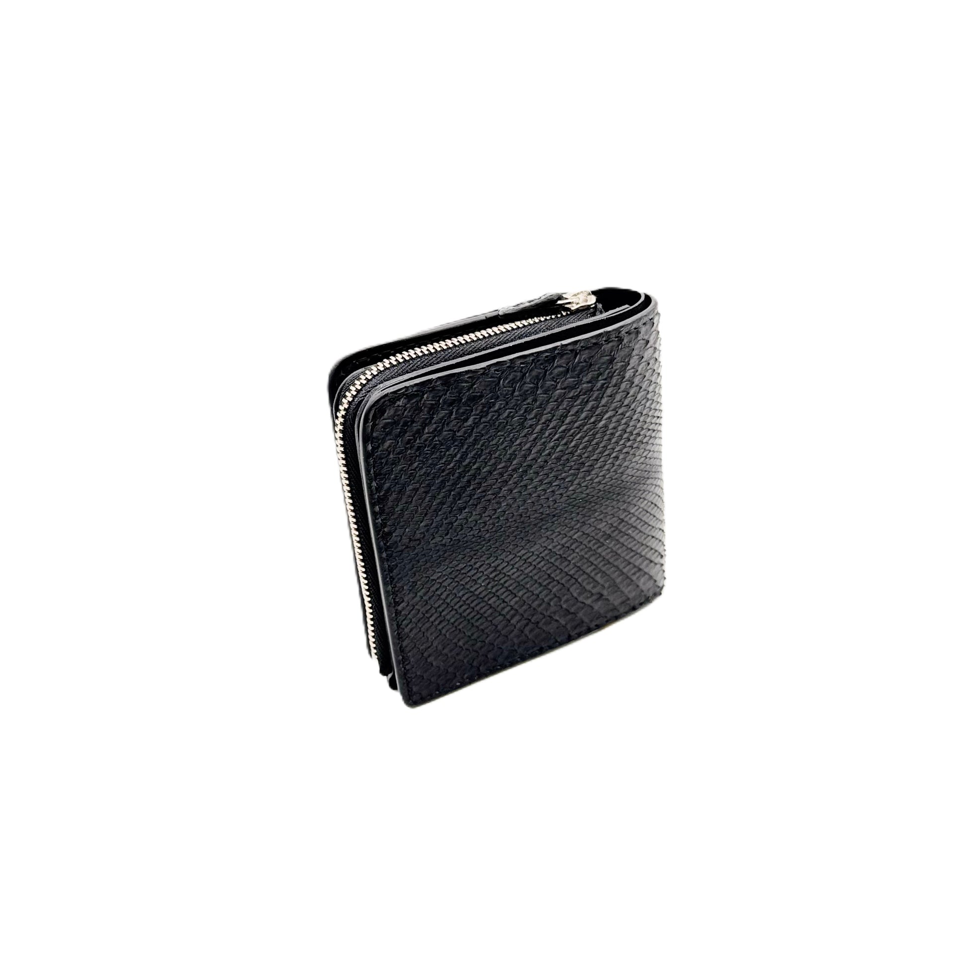 【ダイヤモンドパイソン】ヘビ革二つ折り財布スモール-Black Diamond Python Small Wallet