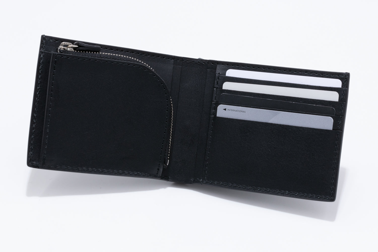 インナーデザインはすっきりとするようにポケットを配置し、小銭入れはL字ファスナーを採用するなど厚みが出ないよう設計しています。